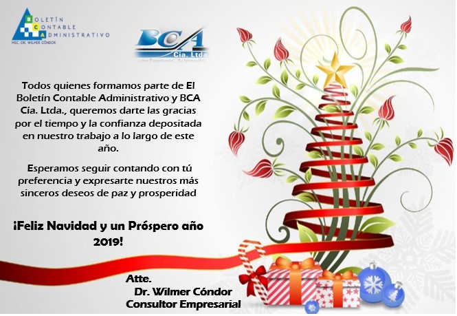 #BCA BCA Boletin Contable AdministrativoEstimad@ colega queremos desearte una Feliz Navidad y un Prospero año 2019.